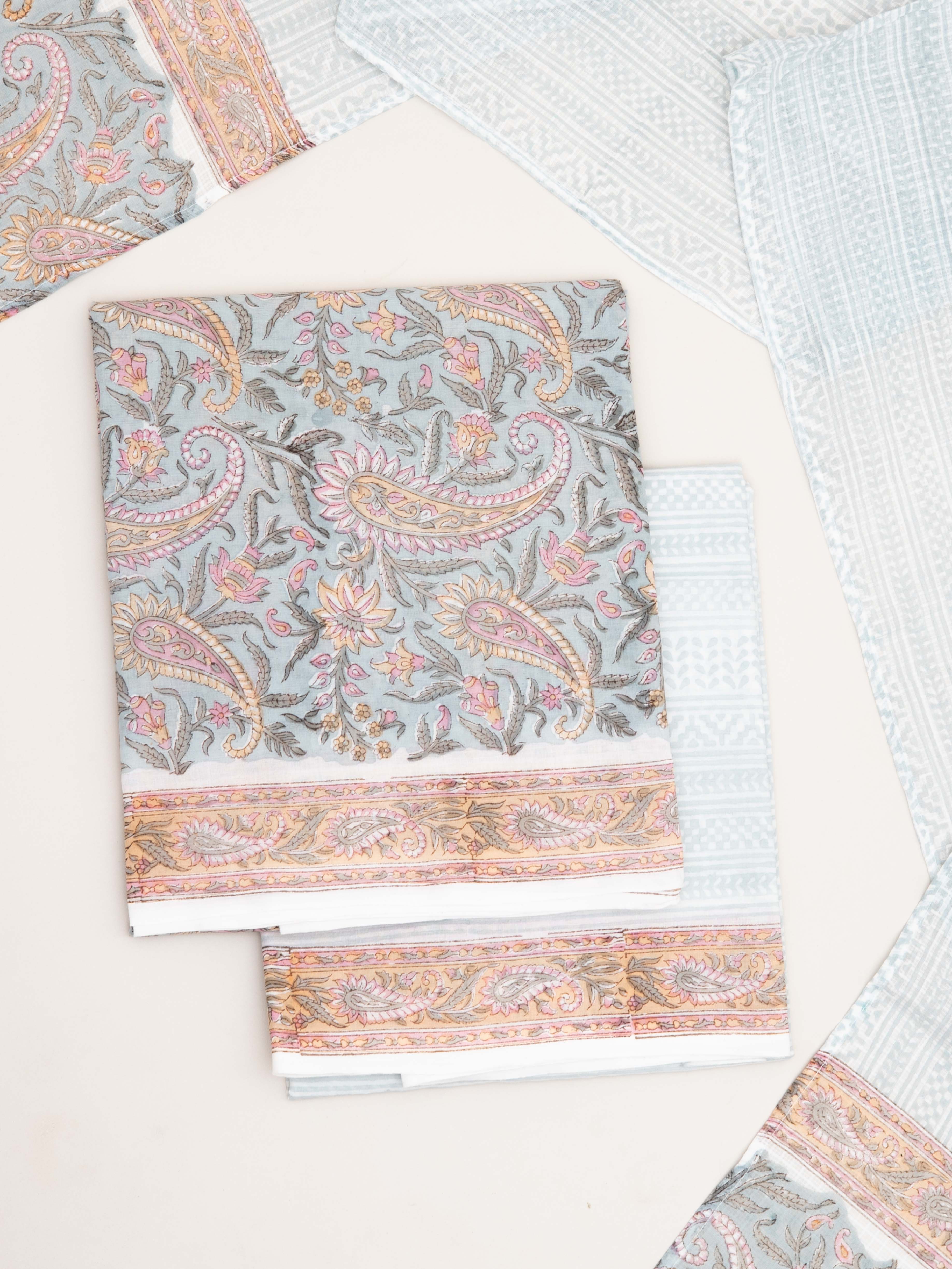 Cotton Block Printed Unstitched Suit Set - 3 Piece