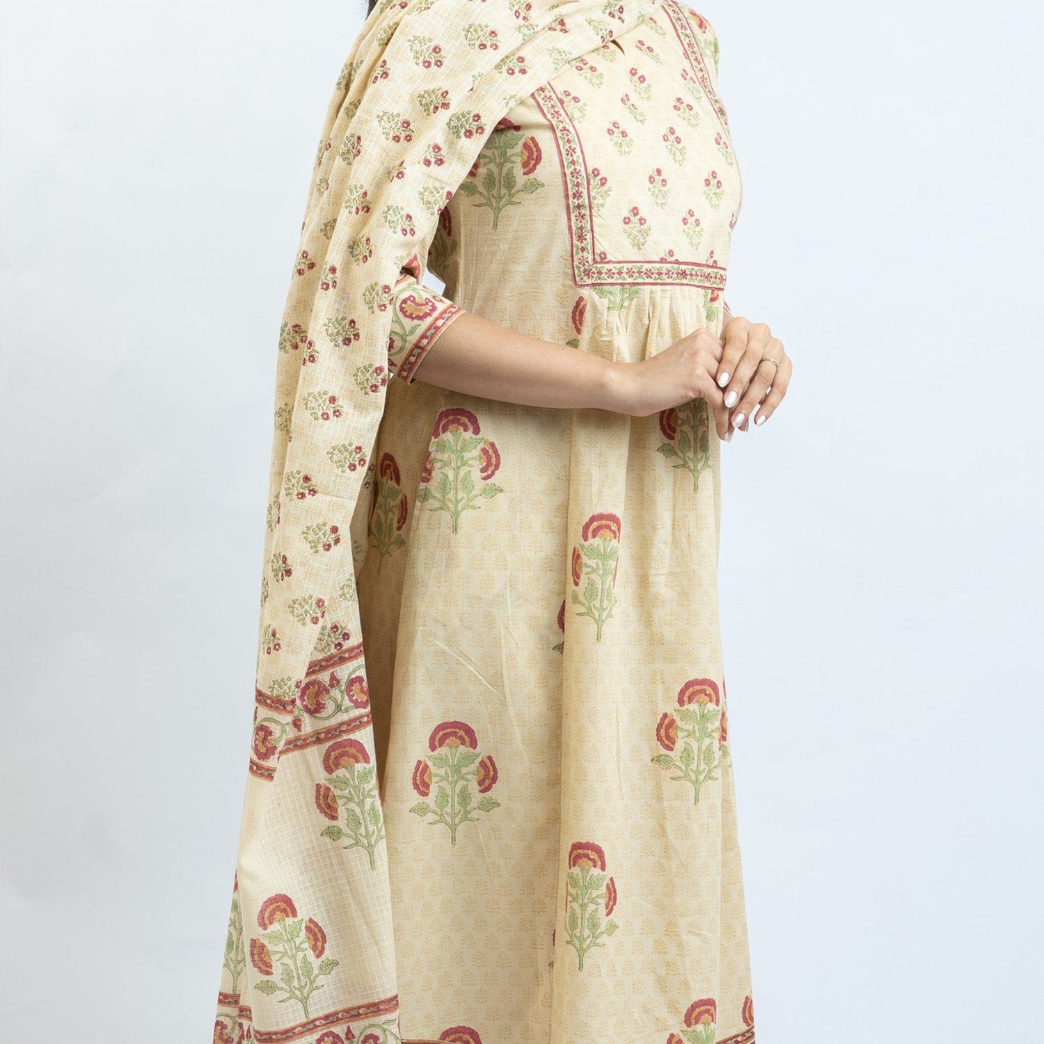 Neha Cotton Block Printed Unstitched Suit Set - 3 Piece