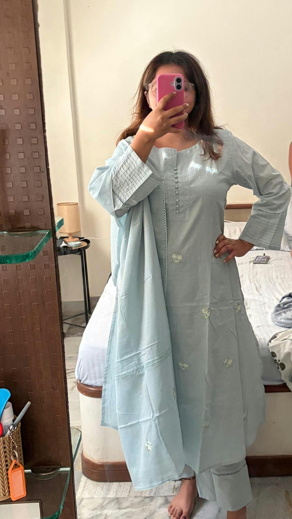Amna Cotton Dobby Embroidered Straight Suit set